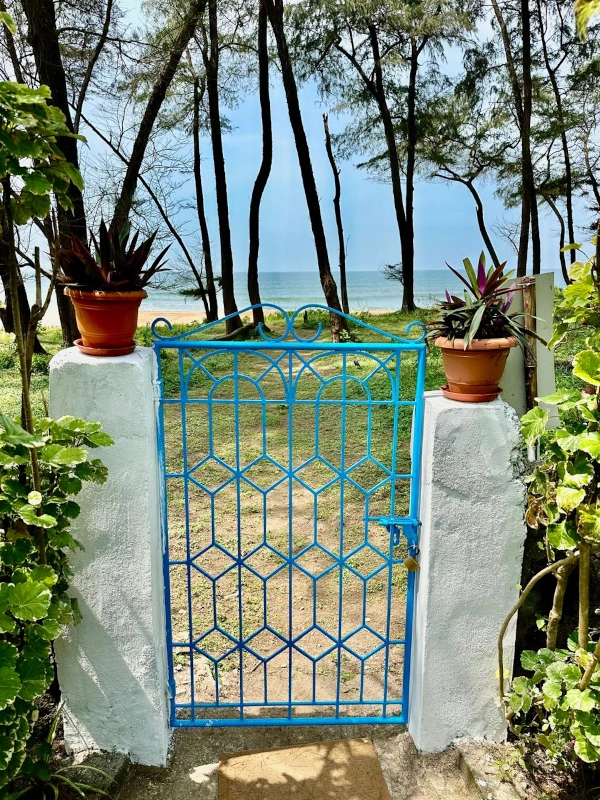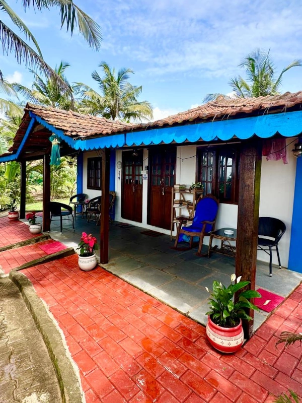 A sea-front cottage placed directly at the edge of the beach. It only takes a few steps before your feet touch the golden sand of Galgibaga beach and your eyes behold of the shimmering glow of the Arabian sea. With a 1.5 kilometre stretch of white powdery sand lined with tall coconut palms, it’s a quiet idyll for nature lovers. The Arabian Sea is a shade of sapphire and offers a refreshing dip too.
