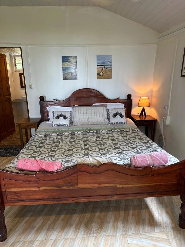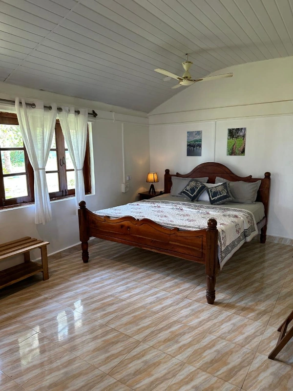 Our rooms are spacious with a common veranda, air-conditioning and a king-size bed.